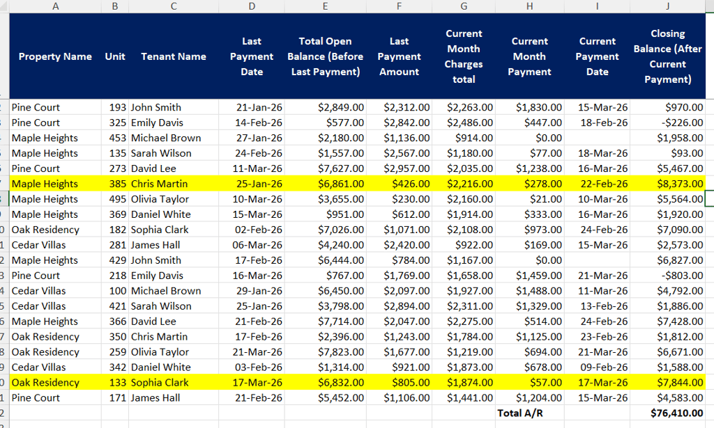 A P&L tells you how much is owed. A Tenant Health Tracker shows you who owes it, how long it has been outstanding, and how much it matters.
